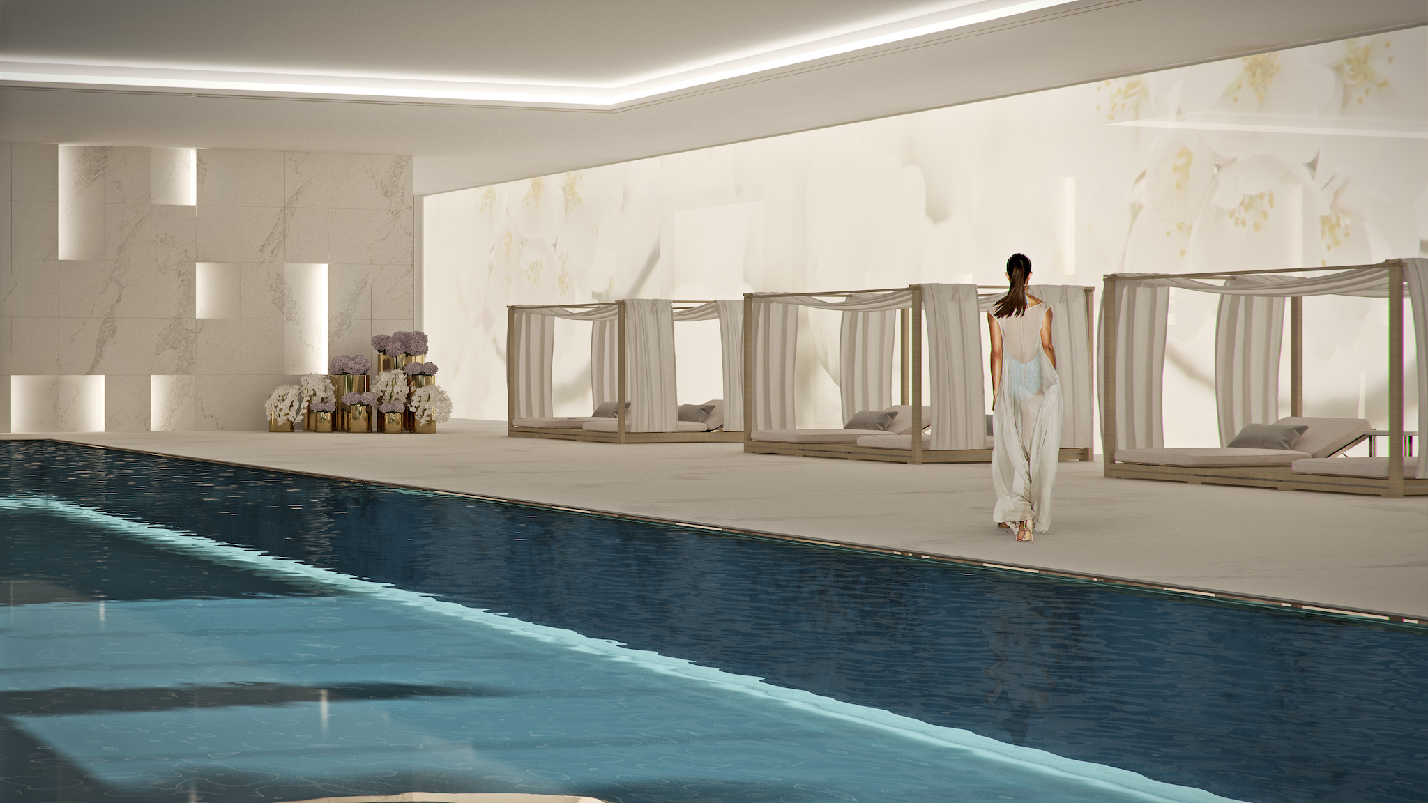 עוד במגדל לובי ראשי מרשים במיוחד בעיצוב אלגנטי ובגובה של 10 מטרים ובריכה פרטית ומקורה עם קיר זכוכית אשר נפתח ומשקיף אל הגינה הירוקה המיועדת לדיירי המגדל בלבד.