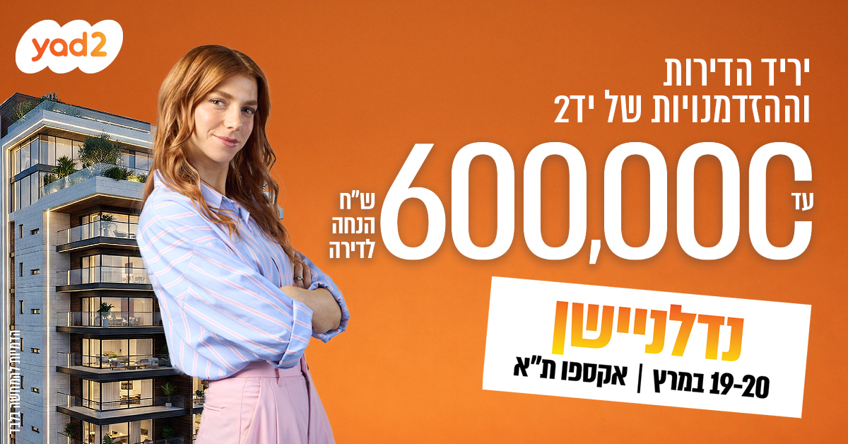 נדלניישן 4 – יריד הדירות וההזדמנויות של יד2 – חוזר ובגדול, והוא מביא איתו הצעה שקשה להתעלם ממנה: הנחות של עד 600,000 ש״ח ברכישת דירה למבקרי האירוע. אחרי ההצלחות הקודמות, היריד מתרחב ומציג השנה היצע רחב במיוחד – לא רק דירות קבלן חדשות, אלא גם עשרות אלפי דירות יד שנייה מכל רחבי הארץ. כל הדירות הכי שוות – בכתובת אחת.