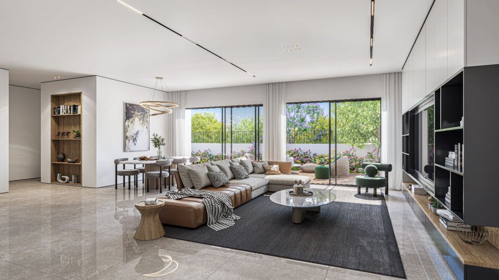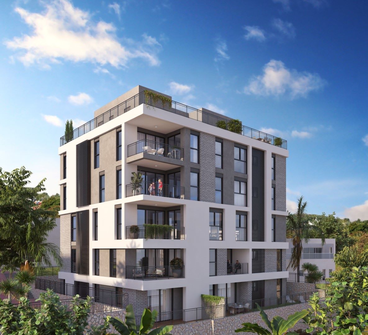 חדרים בקומה העליונה. כל הדירות בפרויקט עוצבו מתוך מחשבה המשלבת את צרכי המשפחה המודרנית ויצירת תחושת מרחבים גדולים ופתוחים אל נוף מרהיב. רמת הגימור הגבוהה של הפרויקט נראית לעין בכל מקום: הלובי, המעלית, מערכות המיזוג, וכמובן הדירות עצמן – בהן תמצאו בין היתר: תשתית לבית חכם, מזגן מיני מרכזי, דלת ביטחון בכניסה לדירה, דלתות פנים איכותיות, קירות חוץ ומחיצות פנים מבטון, חלונות אלומיניום איכותיים, מרפסות שמש נעימות ועוד.